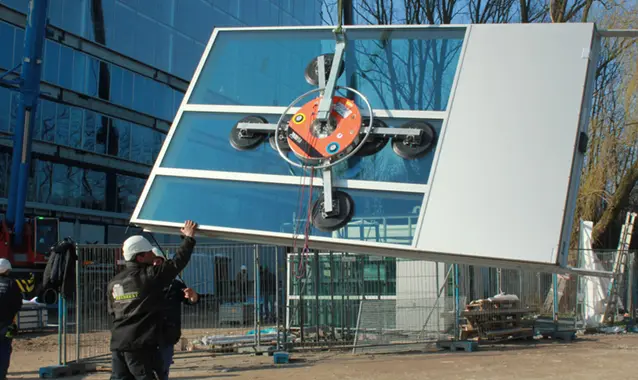 Världens mest hållbara kontorsbyggnad i Amsterdamse Zuidas. Med mer än 13,000 m² glas på fasaden fångar byggnaden en hel del uppmärksamhet från bilister och resenärer längs motorvägen A10. För montering av väggarna sökte företaget Rollecate efter ett multifunktionellt lyftredskap för installation av fasadglasen i olika former och dimensioner. Den valda lösningen blev VIAVAC GBX.